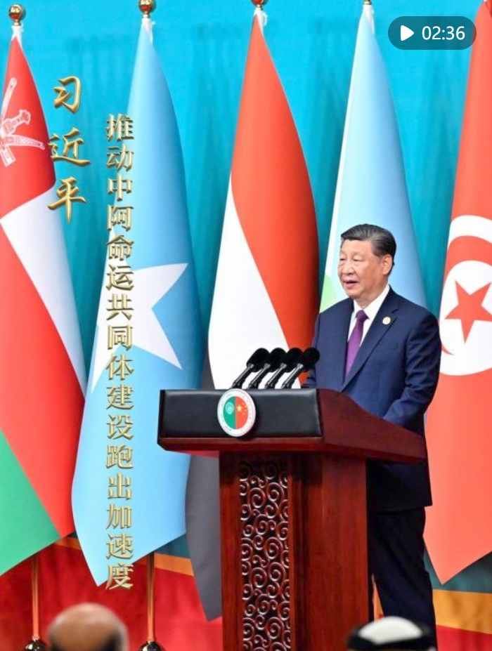 习近平主席在主旨讲话中指出,中方愿同阿方构建“五大合作格局”,推动中阿命运共同体建设跑出加速度。