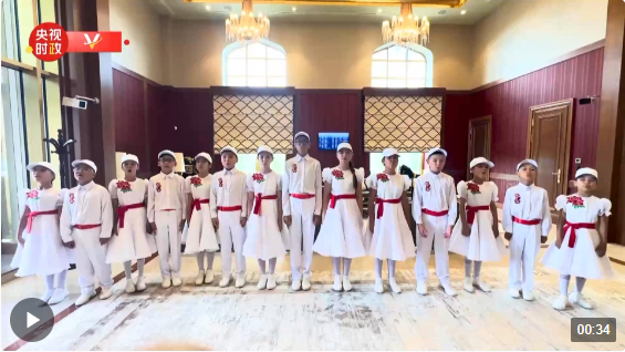 从北京到阿斯塔纳,千里之外的中亚上空响起熟悉的东方旋律。在迎宾仪式现场,十余名哈萨克斯坦少年儿童用中文演唱《歌唱祖国》。
