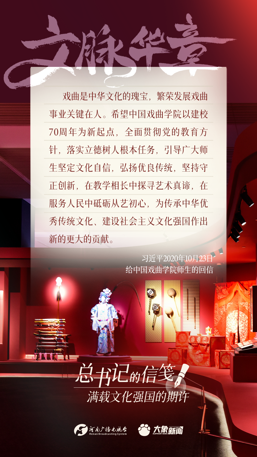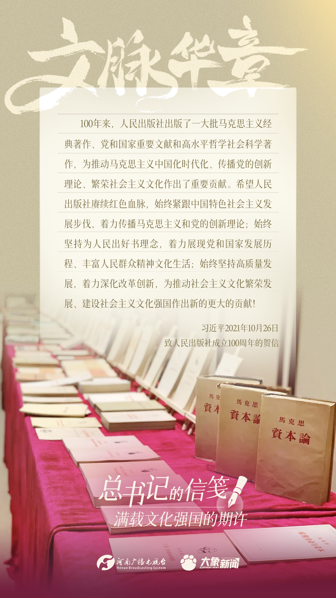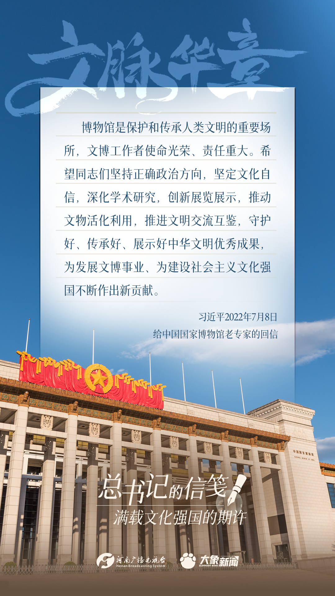 党的十八大以来,习近平总书记多次以书信的方式,同奋战在建设文化强国一线的干部群众、专家学者以及各行各业各界人士亲切交流,一封封信笺,传达关切、鼓励与厚望。
