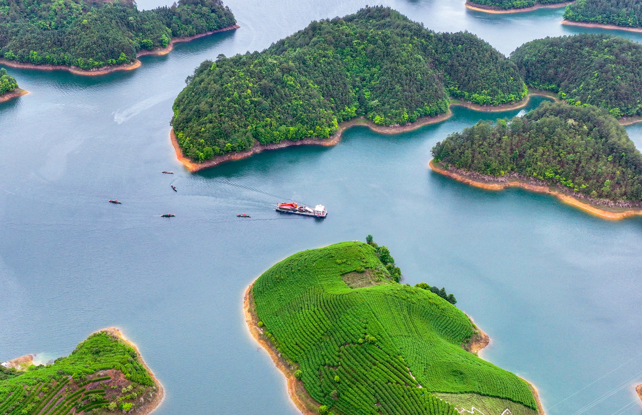 淳安护水志愿者在里商乡塔山村湖上茶园、库湾等处巡查湖面,守护千岛湖秀水。 通讯员 余剑锋 摄