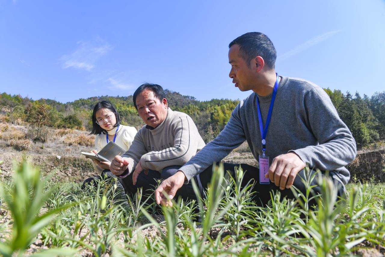 武义县纪委监委组织纪检监察干部下沉一线,坚决整治困扰群众身边的形式主义等问题,切实为基层减负,更好服务乡村振兴。图为该县纪检监察干部深入坦洪乡黄干山村中药材种植示范基地了解相关情况。通讯员 沈云建 摄