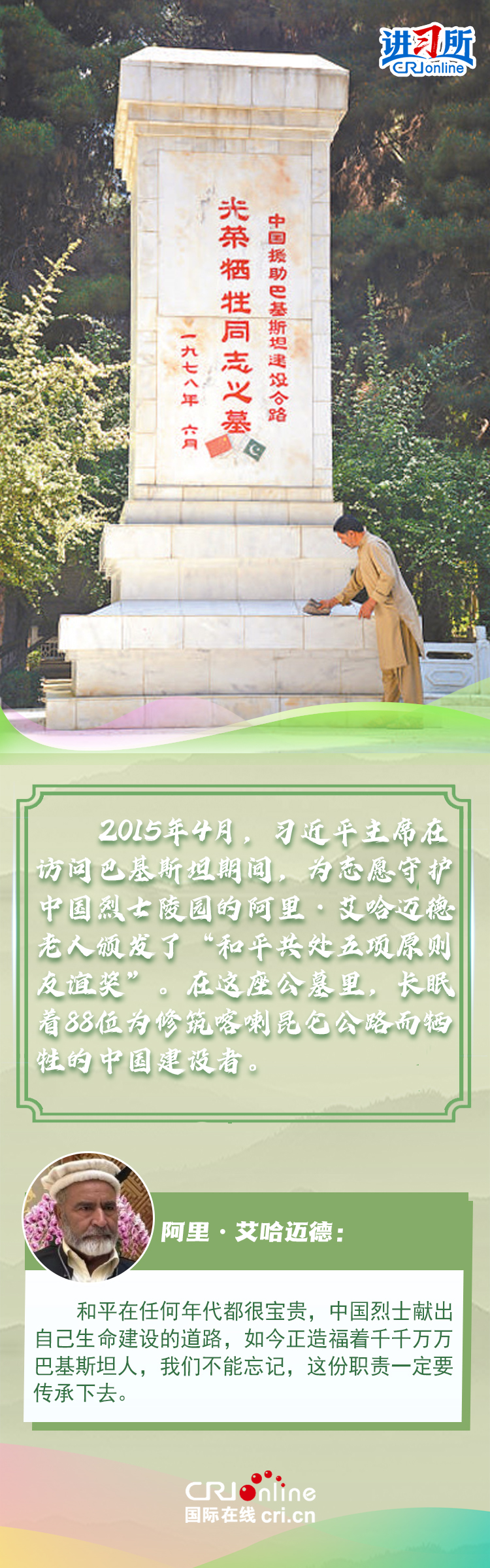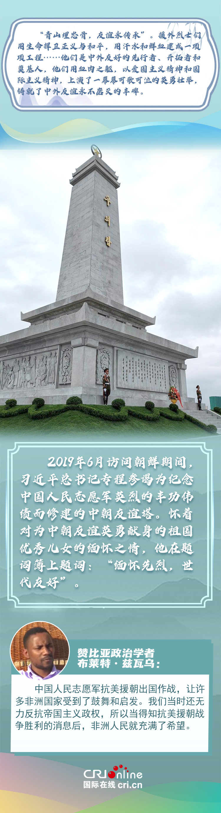 新时代以来,从设立烈士纪念日到出台英雄烈士保护法,再到加强烈士纪念设施保护,中国崇尚英雄、学习英雄的社会风尚赢得国际社会赞誉。在国际人士眼中,中国多年来飞跃式的进步和发展,离不开人们对先辈意志的继承与实践。