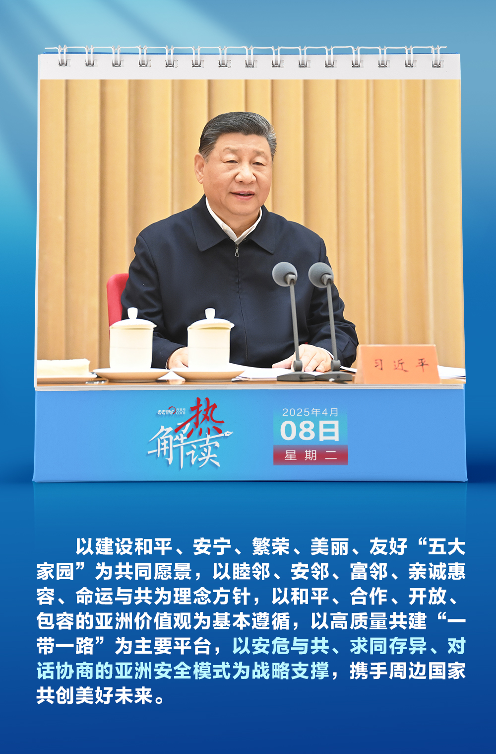 【热解读】4月8日至9日,中央周边工作会议在北京举行,中共中央总书记、国家主席、中央军委主席习近平出席并发表重要讲话。此次会议对我国未来周边工作作出重要部署,并首次提出“亚洲安全模式”。