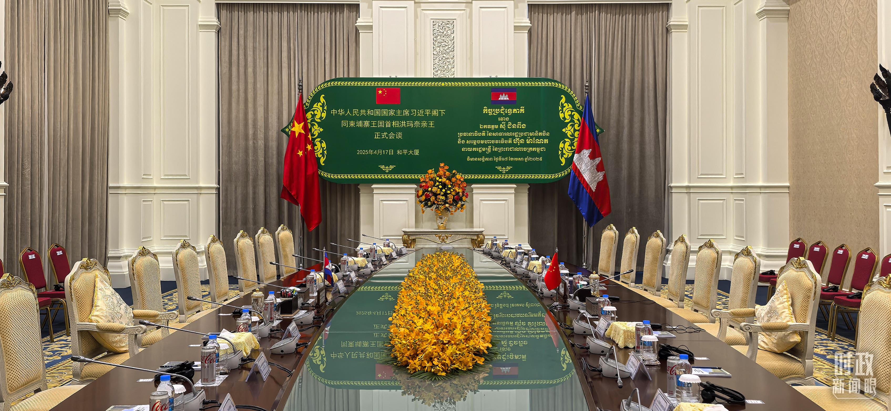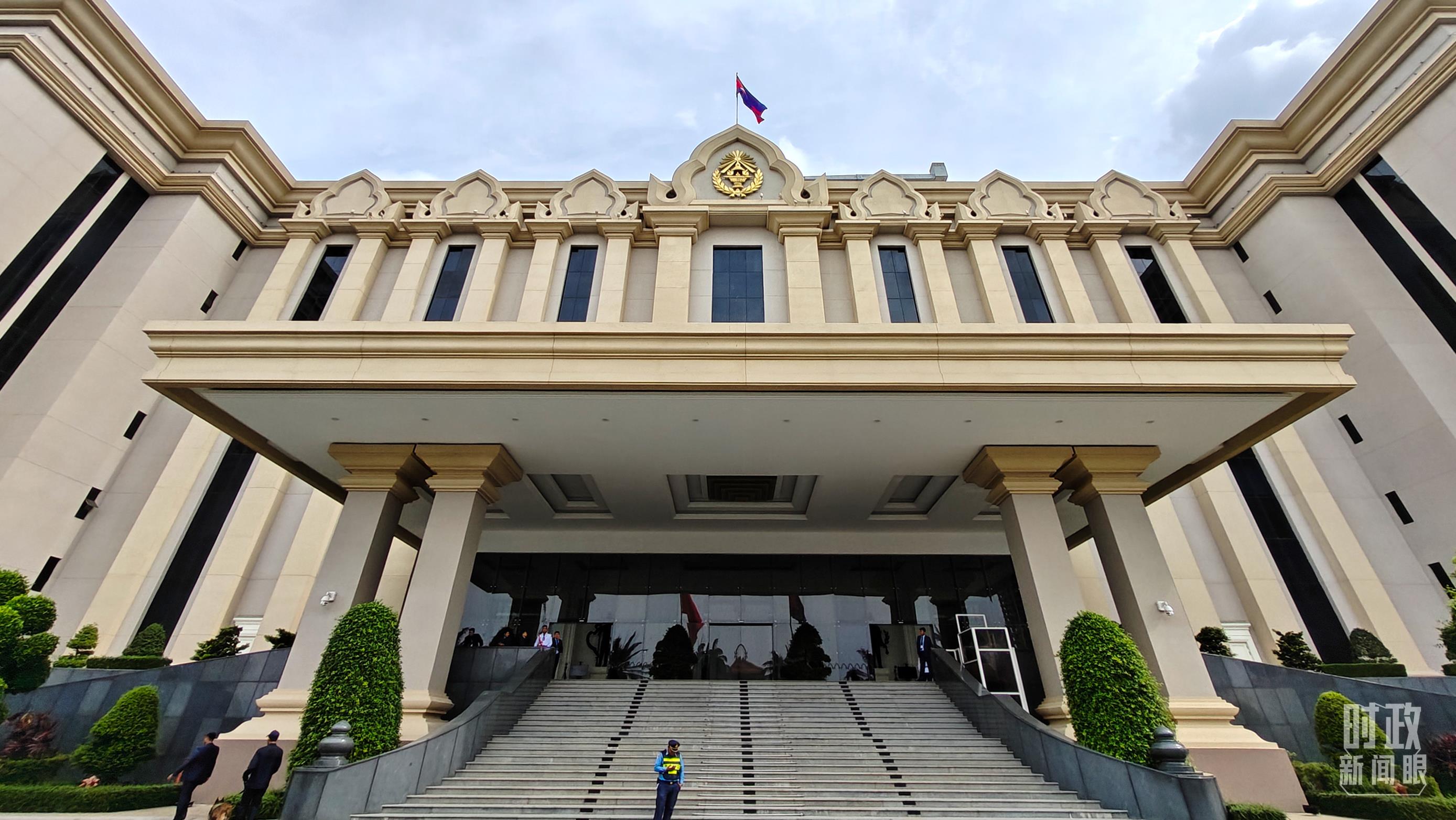 △金边和平大厦,习主席同洪森、洪玛奈的会见会谈在这里举行。(总台央视记者范一鸣拍摄)