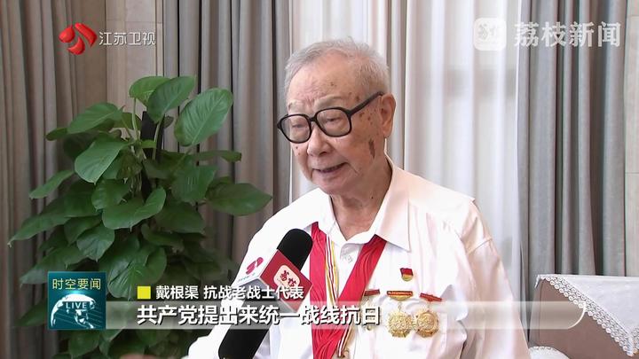 抗战老战士代表戴根渠说:“共产党提出来统一战线抗日,确实是一道抗日的洪流,我和同志们信心越来越强。我经过祖国站起来、祖国富起来,现在看到祖国强起来,我特别兴奋!”