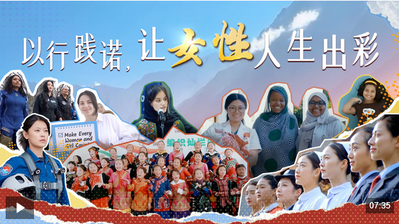 习近平指出,中国坚持将妇女事业融入中国式现代化宏阔实践,妇女事业取得历史性成就、发生历史性变革,中国妇女在经济社会发展中真正发挥着“半边天”作用。中国积极以自身发展为全球妇女事业提供机遇和保障,推动国际妇女交流合作。未来5年,中方将再向联合国妇女署捐款1000万美元;提供1亿美元全球发展和南南合作基金额度,同国际组织合作实施促进妇女和女童发展合作项目;在民生发展领域援助1000个“小而美”项目;邀请5万名妇女来华交流研修;设立“全球妇女能力建设中心”,合作培养更多女性杰出人才。