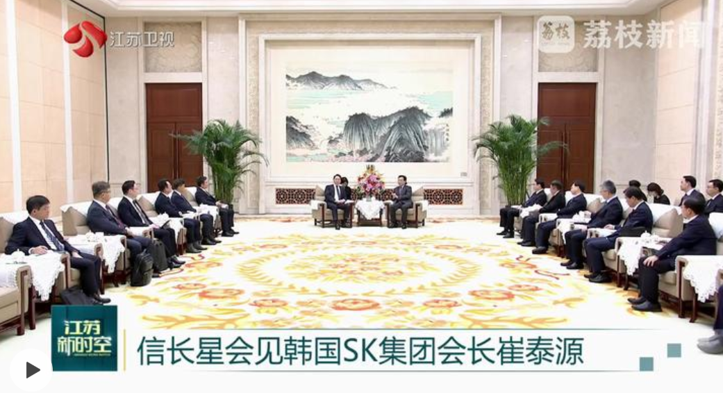 信长星对崔泰源一行表示欢迎。他说,习近平主席会见国际工商界代表时深刻指出,外资企业是中国式现代化的重要参与者,是中国改革开放和创新创造的重要参与者,是中国联通世界、融入经济全球化的重要参与者。SK集团在中国、在江苏的发展就是生动例证。我们将认真落实两国元首达成的重要共识,进一步加强与韩国工商界的交流合作。希望SK集团坚定发展信心,扎根江苏、深耕江苏,不断拓展合作领域,携手创造更加丰硕的成果,助力中韩经贸合作迈上新台阶。