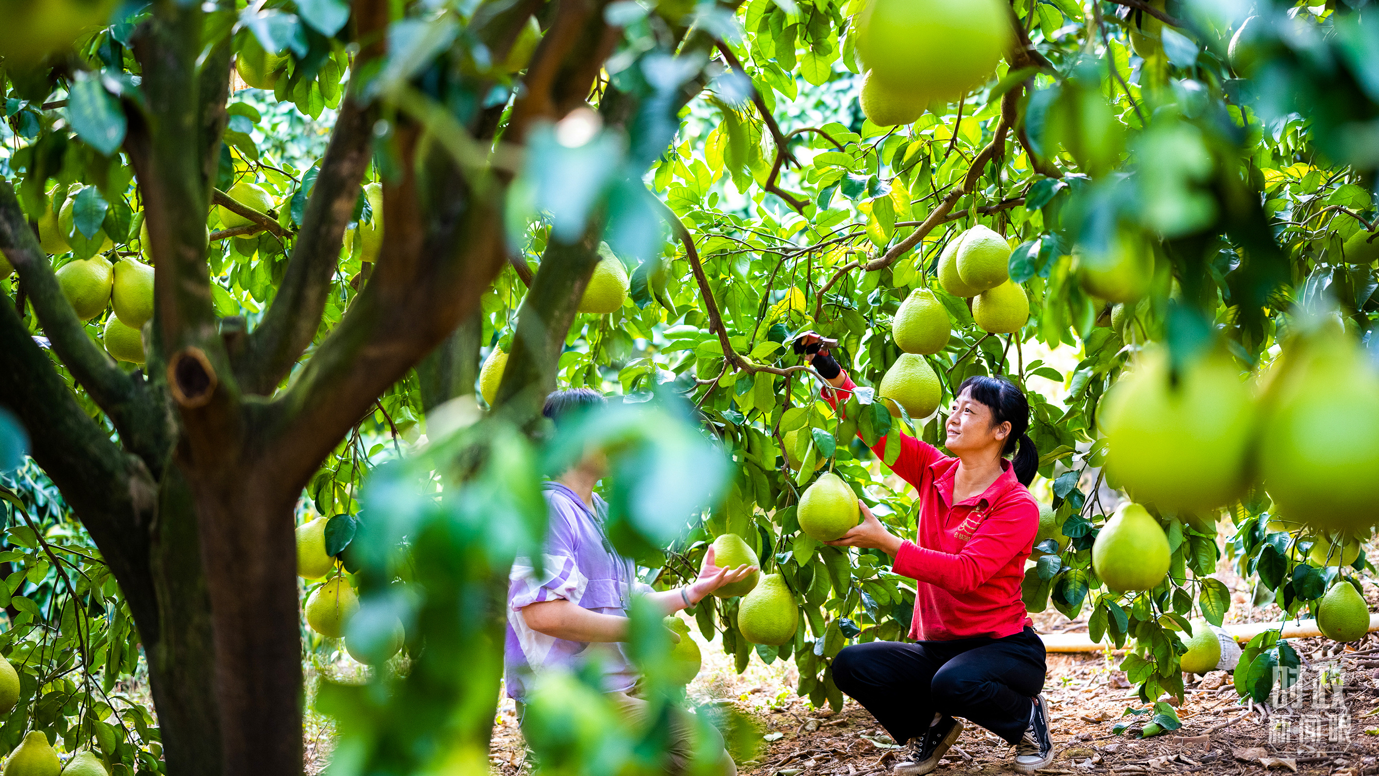 △南福金柚种植基地,柚林迎来丰收。(总台记者吴媚苗、总台央视记者鄂介甫拍摄)