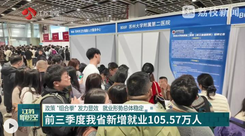 今年前三季度,江苏深入实施稳就业“组合拳”,加大援企稳岗力度、精准帮扶重点群体,全力做好稳就业各项工作,就业形势持续稳定向好。1至9月江苏城镇新增就业105.57万人。