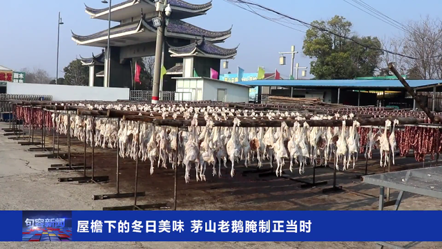 小雪节气,是句容人“冬腊风腌”的起始点,在茅山风景区的农户家中,屋檐下、院落里,那一排排即将挂起的老鹅,预示着一年一度的“晒冬”时节正式开启。这传承百年的腌制手艺,不仅封存了冬天的味道,更酿出了特色产业的丰硕成果。