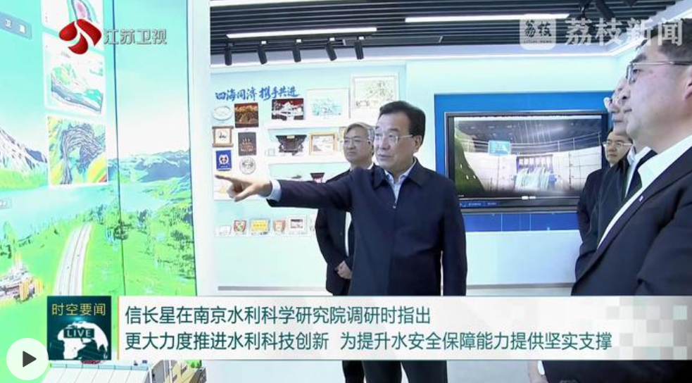 在智慧调度室和相关试验厅,信长星仔细了解智慧南科院管理平台和水库大坝安全监测监督平台建设运行、水工河工模型试验、仪器装备研发应用等情况,与院士专家探讨长江口航道治理、沿海港口发展等话题。信长星指出,江苏同时拥有大江、大河、大湖、大海,正在全力做好修水利、兴水运、扬水韵的大文章,水利技术应用场景十分丰富。希望南京水利科学研究院建好用好综合性科研平台,深度融入江苏发展大局,更好助力全省水灾害防治、水资源节约、水生态保护修复、水环境治理;健全水利科技“产学研用”融合机制,促进科研成果在更大范围转化推广应用,加快发展水利新质生产力。