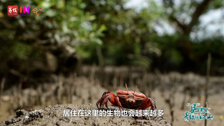 “红树林的‘红’是藏在根里,别看树不高,但根扎得很深。”海口镇斗垣村村民陈建华对这片红树林再熟悉不过。这些年,他每年都种植秋茄树苗,看着它们在这片滩涂上茁壮成长、连片成林。