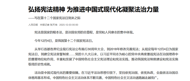 今年12月4日是第十二个国家宪法日。自12月1日起,以“学习宣传贯彻习近平法治思想,推动宪法深入人心”为主题的2025年“宪法宣传周”活动在全国开展。以习近平法治思想为指引,各地各部门认真实施法治宣传教育法,加强宪法宣传教育,弘扬宪法精神,维护宪法权威,推动宪法实施,为推进中国式现代化营造良好法治环境。
