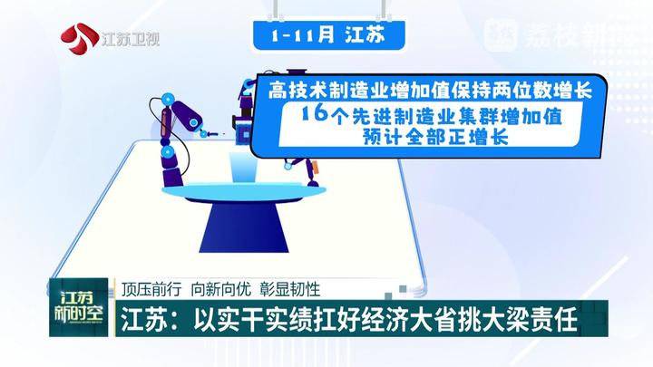 聚焦新兴产业发展,全省13市你追我赶,亮点频现:苏州推动创新投入刚性增长,加快创新效能转化,工业保持高位稳进,1-10月规模以上工业增加值同比增长7.6%,高新技术产业产值增长6.5%;淮安引资增资共同发力,围绕大项目、好项目及科创类项目展开攻坚,前10个月,321个新列项目完成投资940.66亿元,超额完成年度计划……新动能持续壮大、新项目加快推进,1-11月全省高技术制造业增加值保持两位数增长,16个先进制造业集群增加值预计全部正增长。
