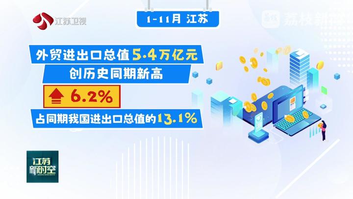 在外部冲击下,外贸不断攀高,体现了江苏经济的韧性。南通前11个月进出口就超过去年全年水平,并首次突破4000亿元;常州对共建“一带一路”国家进出口实现大幅增长……各地政企合力打造新产品、开拓新市场、拓展新渠道,带动外贸呈现新气象,前11月全省外贸进出口总值5.4万亿元,创历史同期新高,同比增长6.2%,占同期我国进出口总值的13.1%。