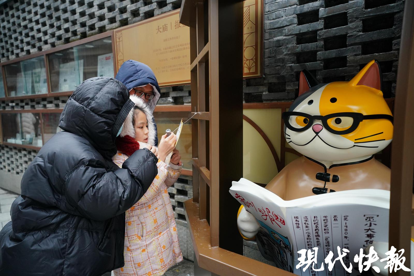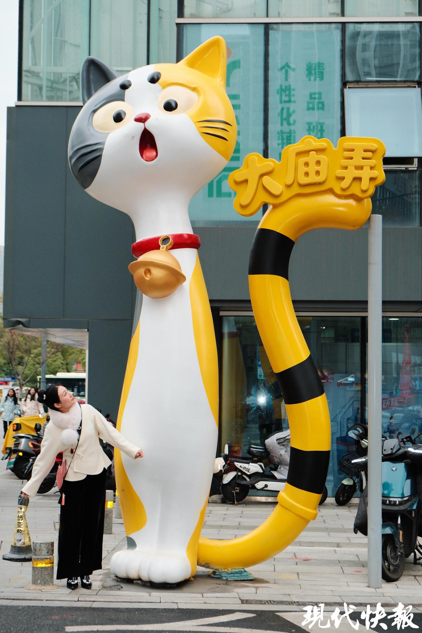 常州大庙弄被喵星人“占领”了!弄堂口迎接你的是一只三四米高的三花喵,招呼着你快来快来;“城隍喵”手捧金元宝,指你发财;报亭里的“卖报喵”、美学代言喵“猫宁”和小跟班“旺财”,组成的萌趣天团,加上坐镇屋顶的“大橘”,霸占你的朋友圈……连日来,含“喵”量爆棚的大庙弄,成了常州老城厢最热闹的打卡地。
