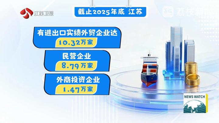 经营主体的数量规模,是衡量区域经济活力与开放能级的核心“晴雨表”。南京海关最新统计数据显示,2025年江苏有进出口实绩的外贸企业数量迈上新台阶,首次突破10万家。