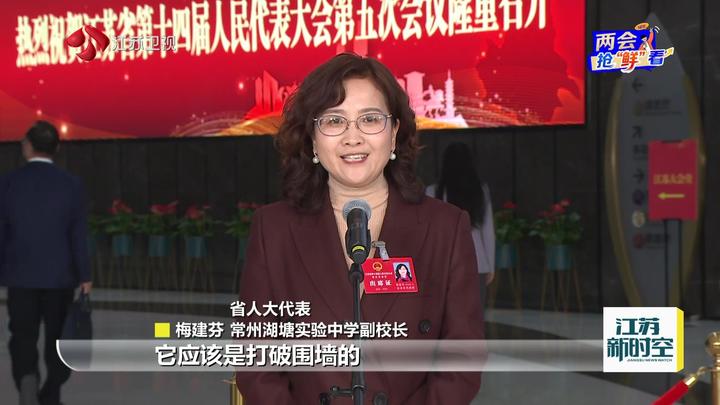 江苏省人大代表、常州湖塘实验中学副校长梅建芬说:“我将极力呼吁并推动形成这样一种教育生态,它应该是打破围墙的,通过校家社联动的实践机制,让知识在真实的场景应用当中去生根。我们要通过课程的优化和数据的赋能,为孩子们提供必须要的个性化的支持和帮助。”