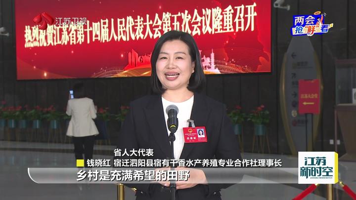 江苏省人大代表、宿迁泗阳县宿有千香水产养殖专业合作社理事长钱晓红说:“乡村是充满希望的田野,新时代的农村大有可为。我认为乡村振兴产业是关键。作为一名人大代表责任重大,我将继续做好‘连接器’和‘助推器’,连接田间地头和广阔市场。”