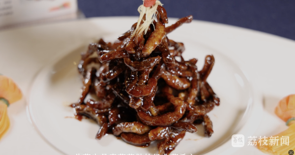 香菇变鳝鱼,凭的不是什么高科技,而是一辈辈传下来的手感和耐心。包师傅手里的剪刀走得不快,却很稳——顺着香菇边缘匀速剪下去,圆圆扁扁的一朵菌子,两三分钟便延展成一条细长弯曲的“鳝身”,宽窄均匀。这只是第一道工。剪好的“鳝丝”还要裹上薄薄的生粉,入油锅先高温定型、再复炸变酥,最后另起锅熬糖醋汁,快速翻炒挂汁。如此几道工序下来,一道宫廷素脆鳝便算完成了。