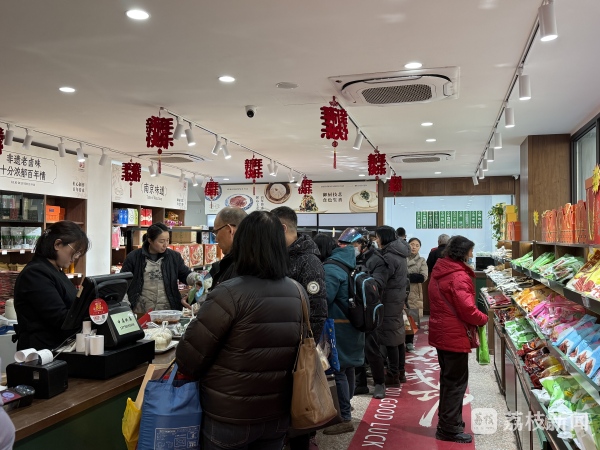 年关愈近,绿柳居一楼的大厅愈像一座被年货堆满的“粮仓”。窗口里,白胖的素菜包子还在冒着热气;货架上,盐水鸭、八宝饭、素烧鸭、特色糕点垒成小山,手提袋的窸窣声、购物车轮的轱辘声、收银机的咔嗒声,混成一曲年前特有的交响。顾客告诉记者,来这里买年货,是年前必不可少的一项日程:“基本上他们家的产品我们都买了,很符合我们老南京人的口味。我全国各地好多朋友,都特别爱吃他家盐焗鸡这些东西,过年过节,我都到这里来买。”