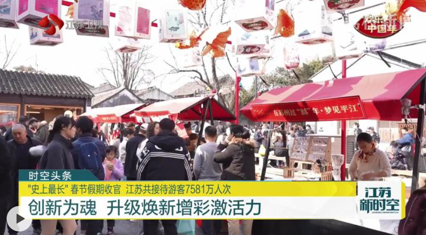 在晴好天气“感染”下,不仅鲜花绽放,大众的出游热情也被点燃。“一票难求、一队难排、一房难求”成为这个“史上最长春节”的常态。江苏各地的景区、商圈、乡村集市人头攒动,尽显澎湃活力。