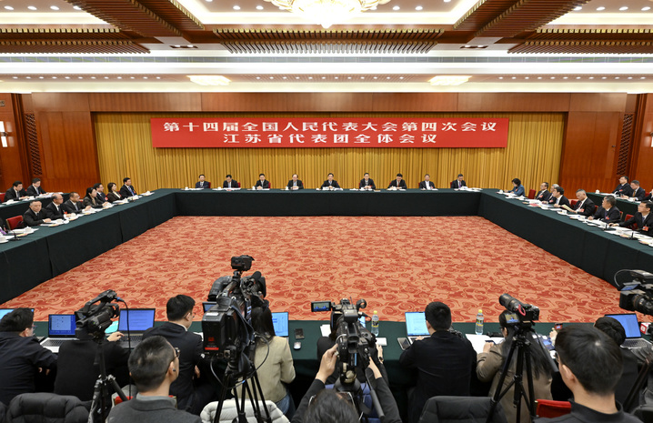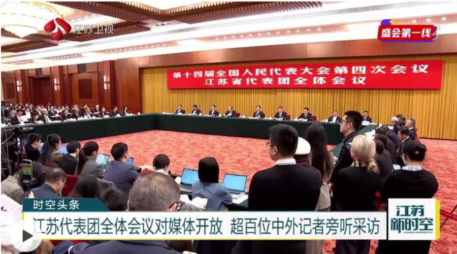 3月7日上午,十四届全国人大四次会议江苏代表团举行第四次全体会议,审议政府工作报告,审查计划报告和草案、预算报告和草案。根据大会安排,本次会议对境内外媒体开放。全国人大代表、省委书记、省人大常委会主任信长星,全国人大代表、省委副书记、省长刘小涛等回答了中外记者提问。