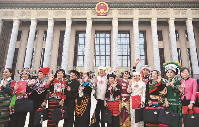3月12日,十四届全国人大四次会议圆满完成各项议程在北京人民大会堂闭幕,代表们信心满满走出人民大会堂。 吴胜 万程鹏 摄
