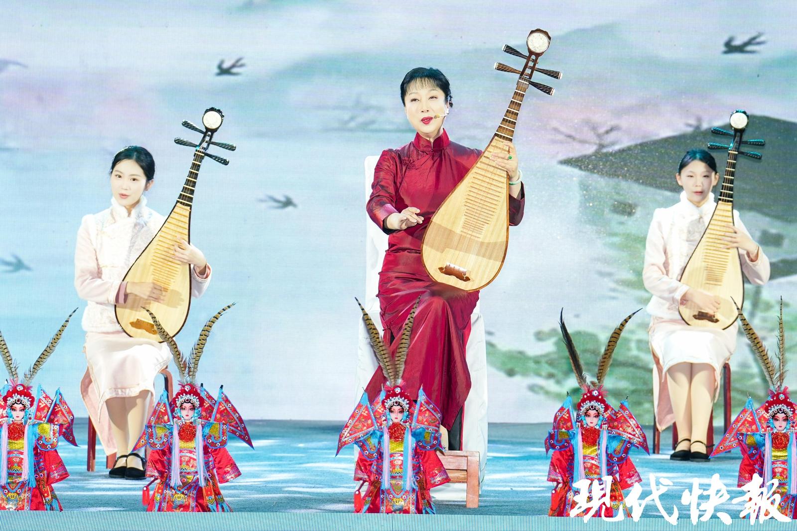 压轴登场的戏曲名家联唱《好戏连台惠民生》,集结六位中国戏曲梅花奖、省文华表演奖获得者,以京、昆、锡、淮、扬、越剧六大剧种唱腔轮番演绎,将现场演出氛围推向高潮,赢得现场观众阵阵掌声。