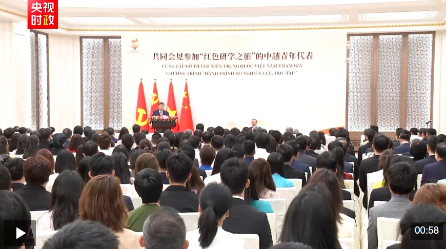 习近平表示,不久前,我收到越南河内国家大学外语附中等学校的同学们用中文写来的信,分享了参加“红色研学之旅”的深刻感悟,立志做中越友谊的传承者和传播者,我感到很欣慰。他强调,青年是推动社会发展进步的有生力量,也是中越两党两国事业薪火相传的接棒人,中越友好的未来在青年。